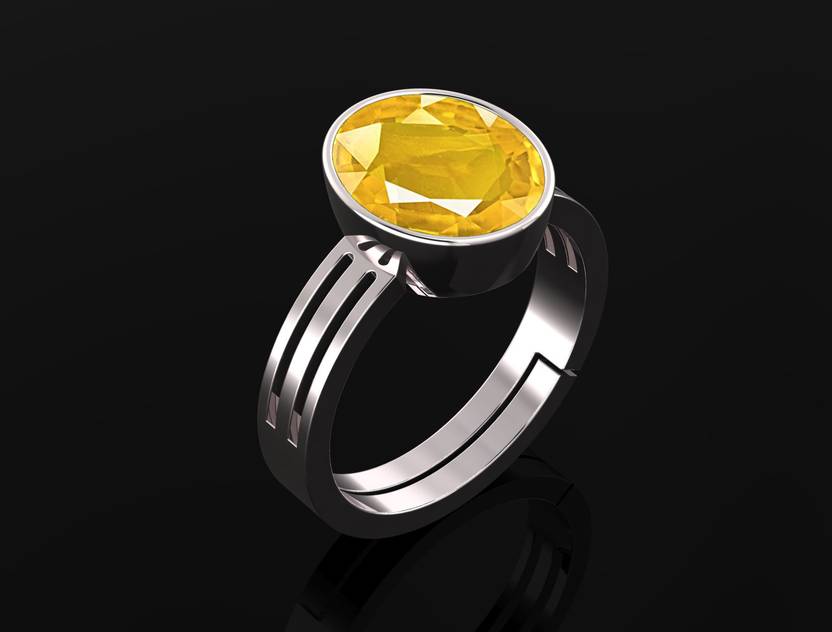 RATAN BAZAAR 7.25 Ratti Natural Pukhraj Stone Yellow Sapphire Certified Ring For Men Copper Sapphire Silver Plated Ring