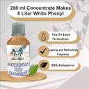 Key Features | - Highly Concentrated Formula: Makes up to 8 liters of ready-to-use white phenyl from just 200ml concentrate., Extra Strong Cleaning Power: Effectively eliminates germs, bacteria, and unpleasant odors., Pine Oil Infused: Natural pine oil for added freshness and improved cleaning performance., Multipurpose Use: Ideal for homes, offices, hospitals, and industrial spaces., Cost-Effective: Dilution-based formula provides long-lasting value., Disinfectant & Deodorizer: Cleans surfaces while leaving behind a refreshing pine fragrance.