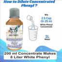 Usage Instructions | - Preparation: - Shake the bottle of concentrate well before use to ensure even distribution of ingredients., Dilution: - For general cleaning, dilute 200ml of the White Phenyl Concentrate with 7.8 liters of water. - Mix thoroughly to ensure an even solution., Application: - Apply the diluted white phenyl solution to floors, walls, and other hard surfaces using a mop, cloth, or sponge. - For deodorizing, apply the solution to open spaces, corners, or areas with strong odors., Disinfection: - Allow the surface to remain wet for a few minutes for proper disinfection, especially in areas prone to germs (e.g., bathrooms, kitchens)., Rinse (Optional): - Rinsing is generally not required unless the surface comes into contact with food or water sources., Storage: - Store the concentrate in a cool, dry place, away from direct sunlight, and out of reach of children.