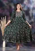 rathore Women Floral Print Anarkali Kurta (Maroon)