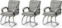 RATISON Office visitor Home study reception school library arm without wheels Chair Leatherette Office Arm Chair (Grey, Set of 3, Optional Installation Available)