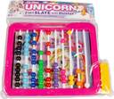 "The Classic Counting Slate is a versatile educational toy that combines counting, colour recognition, and drawing activities. It features a slate with 55 beads in 10 different colours arranged in a sequence from 10 to 1. Additionally, the back of the slate serves as a blackboard for scribbling and drawing, and it comes with chalk and a duster.