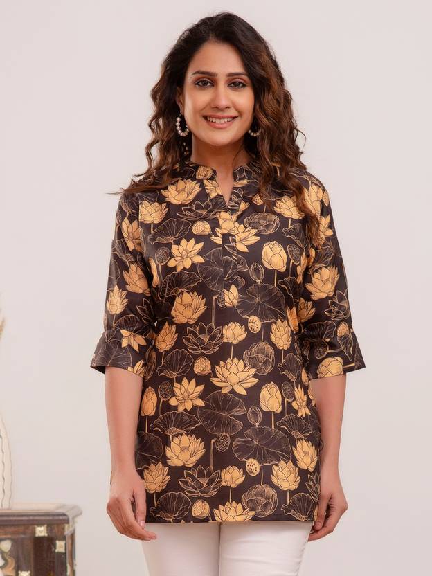Casual Regular Sleeves Printed Women Brown, Yellow Top