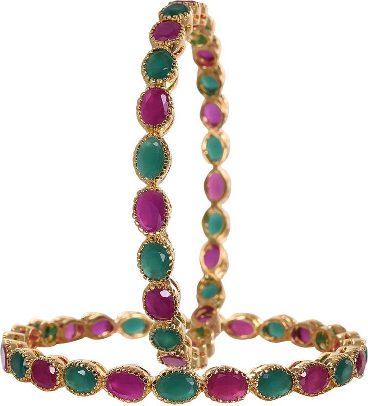 Ratnavali Jewels Brass Cubic Zirconia Gold-plated Bangle Set (Pack of 2)