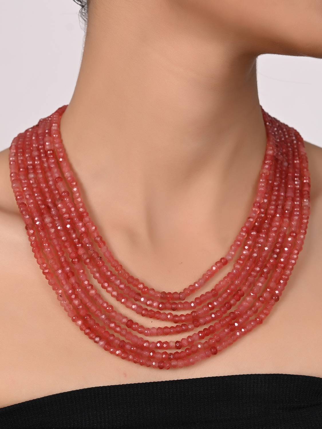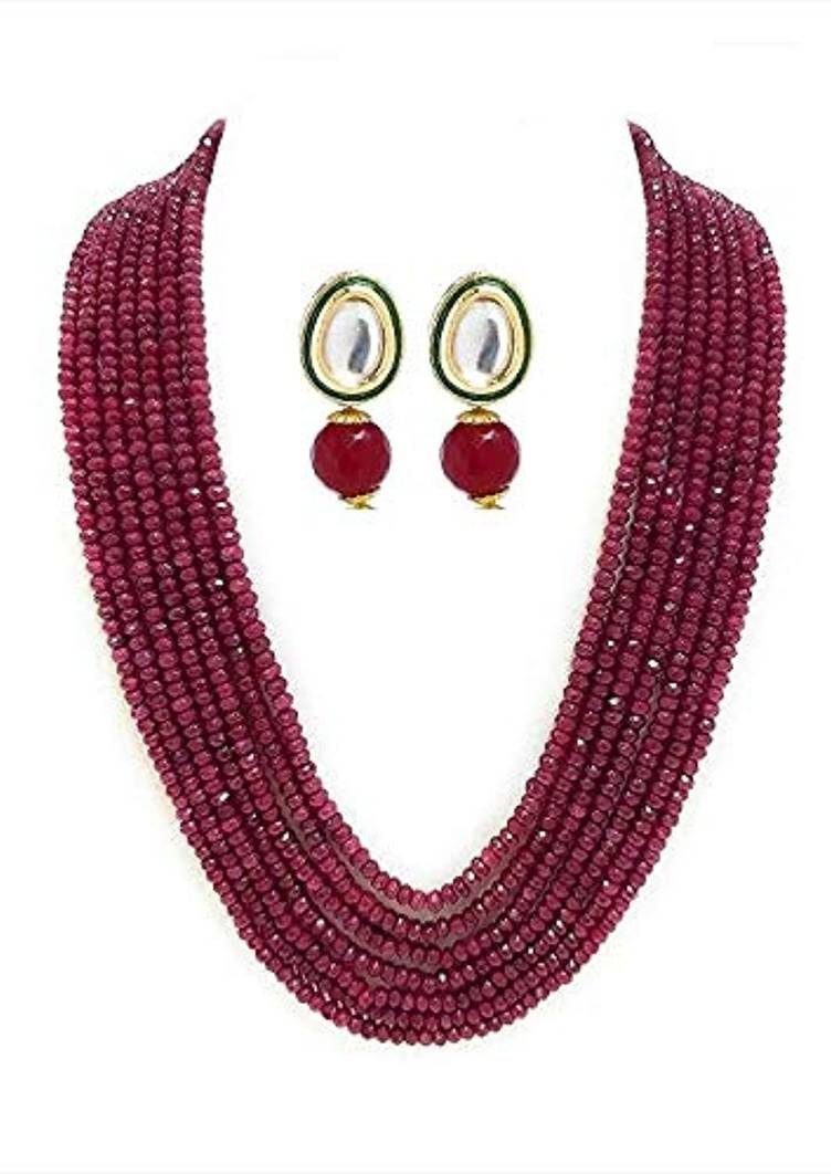 Get a classic & ethnic look by this Multi coloured necklace by Ratnavali Jewels. Featured with multi quatrz beads giving a vibrant look to this piece. The product consists of natural beads which are dyed. Great for daily wear use or with any traditional outfit. Approximate Length: 24 inches;