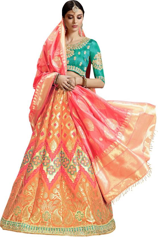 Embellished, Floral Print, Paisley Semi Stitched Lehenga Choli (Orange)