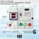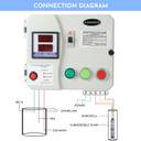 RATNOTECH Fully Automatic Submersible Pump Starter with Water Level Controller is the ultimate solution for efficient water management in borewells, sumps, and overhead tanks. Designed with advanced automation, this pump starter eliminates the need for a separate water level controller, ensuring hassle-free operation. The digital LED display provides real-time monitoring of voltage, current, and water levels (50% and 100%), making it user-friendly and highly efficient. Equipped with over & under voltage protection, this system safeguards your pump from power fluctuations, enhancing its durability and performance. The auto & manual mode allows you to switch between automatic operation and manual control as per your convenience. In manual mode the pump need to be started manually and it will stop the pump automatically , in auto mode the pump operation will be fully automatic .Featuring no-clean sensor technology, this device ensures accurate water level detection without requiring frequent maintenance line cleaning of the sensor. Ideal for homes, apartments, farms, industries, and commercial buildings, this energy-efficient and long-lasting pump controller is built for superior performance. RATNOTECH pump starter is your perfect companion for seamless water management.