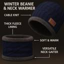 Product Type: Beanie Cap with Neck Warmer, Material: Woolen knit with fleece lining, Fit Type: Stretchable / Regular fit, Pattern: Solid, Season: Winter, Occasion: Daily wear, outdoor, travel, Care Instructions: Hand wash recommended, Suitable For: Men & Women, Pack Includes: 1 Beanie Cap + 1 Neck Warmer