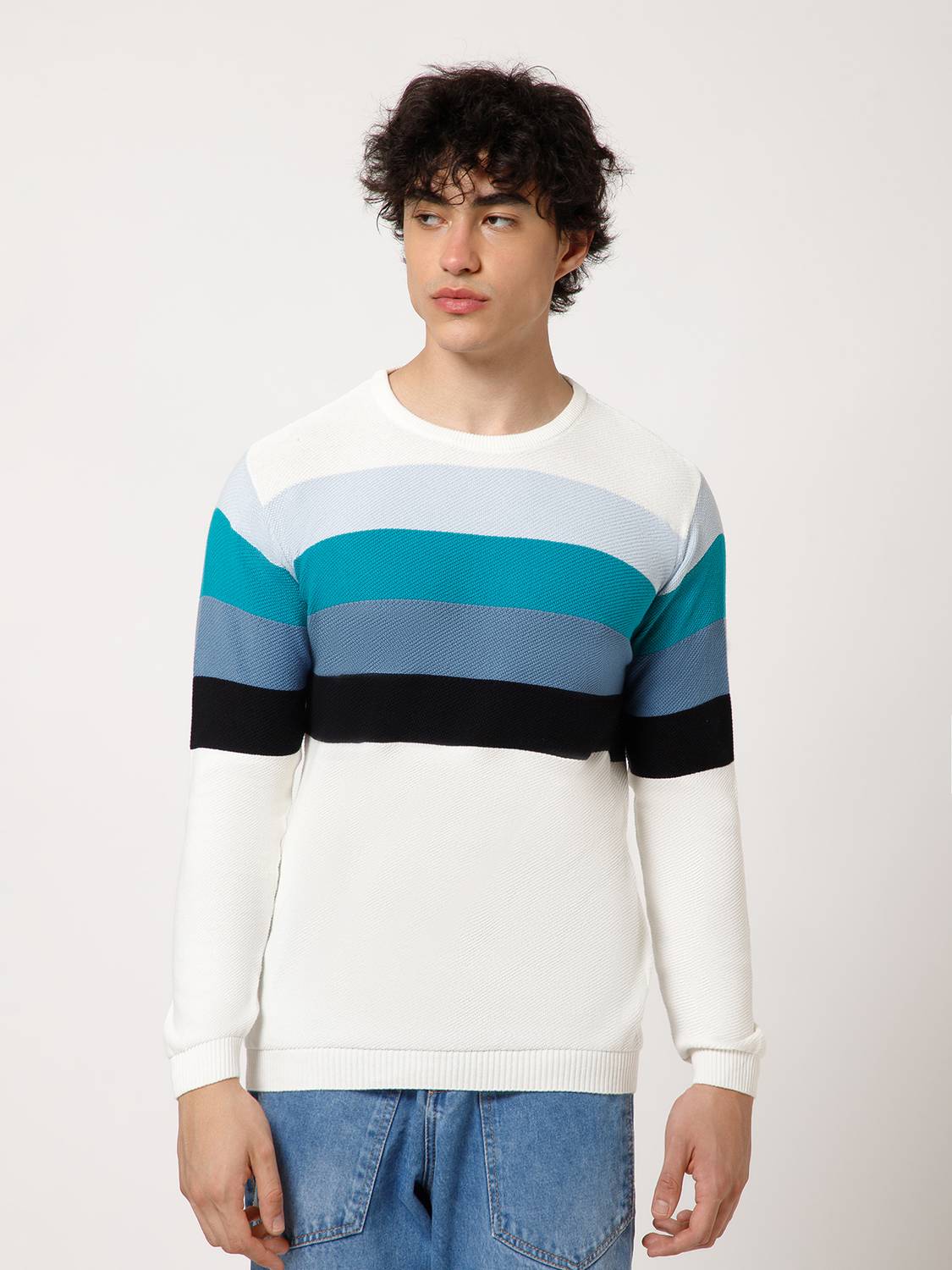 Bring a touch of Italian elegance to your wardrobe with this premium multi-stripe sweater, made from 100% Indian cotton.