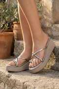 Wedges, Thin Straps, Metallic, Open Toe
