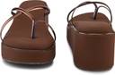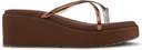 These stylish pink wedge sandals feature a comfortable platform sole and thin, iridescent criss-cross straps with a toe ring design. The solid pink wedge provides elevation, while the textured brown outsole offers grip. These sandals are perfect for adding a touch of modern elegance to your casual outfits.