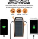 RAVPower 15000mAh Outdoor Portable Charger Solar Power Bank Dual USB External Battery Pack Power Pack with Flashlight, Solar or DC Input Charging, It doesnât just feature solar charging but an DC5V/2A input too. Not only is it a reliable way to charge on cloudy days, it takes just 8 -9 hours to completely recharge with a 2A/2.4A charger. 15000mAh Capacity Charges Two Devices, Enjoy a large 15000mAh capacity and two iSmart powered 2.1A ports that offer simultaneous charging. With this much power, you can charge an iPhone 7 4.2 times, an iPhone 7 Plus 3 times, and the Galaxy S8 2.8 times. Reliable and Bright LED, The built-in LED light serves as a convenient solution in case you need a light at night; simply hold the power button for 3 seconds to activate / deactivate whenever you need it. The design includes dust and shock protection, as well as built-in overcharge and short circuit safeguards. 3 STEPS FOR BETTER USE: 1. Do not charge through a glass surface (e.g. a window). 2. Please charge in strong sunlight. Light can be detected in cloudy or indoor environments, but it is not enough to recharge the unit. 3. Do not leave in your vehicle during summer as the heat will affect the battery life. SPECIFICATION: - Battery Type: Li-Polymer Battery, - Capacity: 15000mAh, - Input: DC 5V/ 2A, - USB A1: 5V/ 1A, USB A2: 5V/ 2.1A, - Solar Panel: 1W/250mA. NOTE: 1. Please do not take solar as primary recharge source, as the charging speed will subject to sunlight intensity and panel conversion rate and it takes a week to obtain a full recharge when powering only with sunlight. 2. To enjoy the faster 2A input, please recharge with a 2A and above charger and the original data / charging cable. 3. The red LED indicator turns on indicating it's recharging via solar panel. What's in the Box: - 1 x RAVPower Solar Powered Charger, - 2 x USB to Micro USB cables (Lightning cable is not included). - 1 x User Guide.