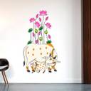 rawpockets 100 cm Kamadhenu Cow and Calf with Lotus Self Adhesive Sticker  (Pack of 1)