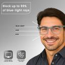 Rayblock Blu features patented lens technology which helps protect your eyes from harmful blue violet light emitted by digital devices like smartphones and computers as well as the ultraviolet rays from the sun. These lenses are Anti Glare, Crack Resistant, hydrophobic, dust repellent and offer UV400 protection.