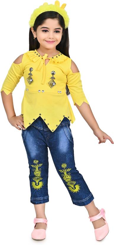 Rayhanfashion Girls Casual Top Jeans (Yellow)
