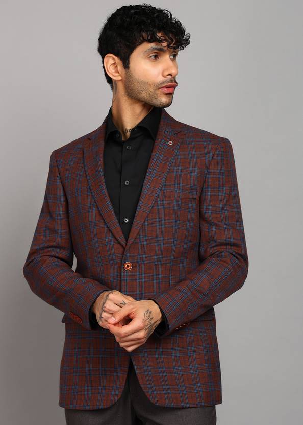 Raymond Checkered Single Breasted Formal Men Blazer (Orange, Blue)
