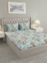 Raymond Home Microfiber Double Flat 100 TC Floral Bedsheet (Pack of 1, Blue)