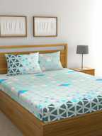 Raymond Home Cotton Double Flat 200 TC Geometric Bedsheet (Pack of 1, Blue)