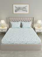 Raymond Home Cotton Double Flat 104 TC Floral Bedsheet (Pack of 1, Fiesta Blue)