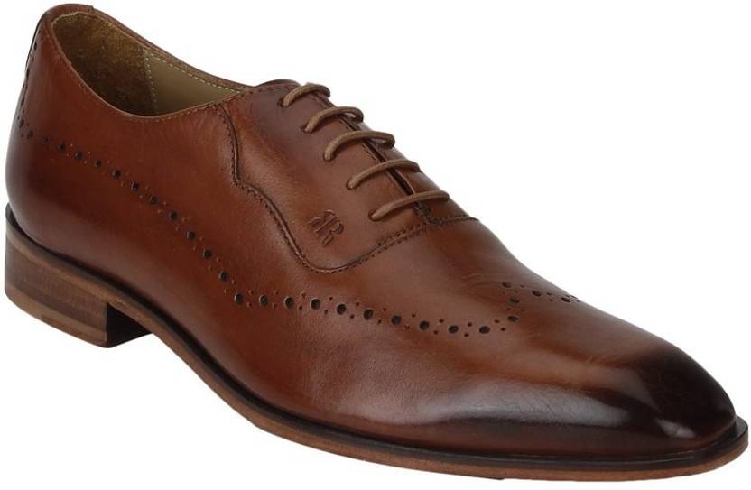 Boasting of class, unmatched comfort and sophistication are these brown Oxford shoes from Raymond. Making them absolutely unique is their one-piece design and an excellent finish. The perforated design and contrast toe are other striking highlights of these lace-ups. Crafted using durable leather, these shoes are a must-have.