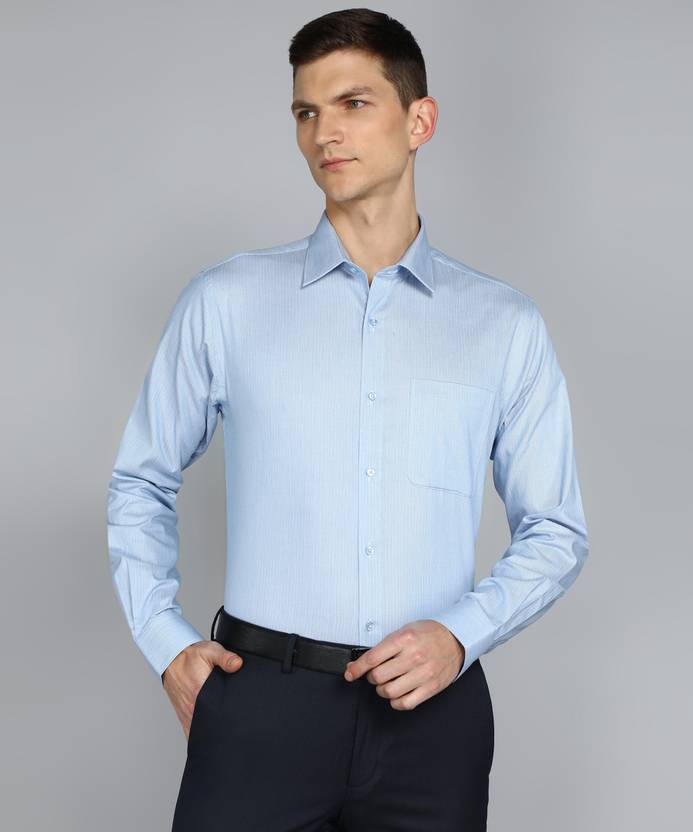 Raymond Men Self Design Formal Light Blue, White Shirt