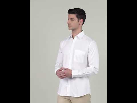 Designed with a solid pattern, this men's formal shirt exudes a timeless charm and eleganc...