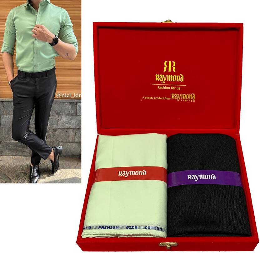 Attractive Velvet Box Gift pack, Raymond Shirt and Raymond Pant, Full Sleeve Shirt fabric and Full length Pant fabric, Giza Cotton Shirt and Ployviscose Pant, Best for Gifting to loved ones, Good Fabric for stitching