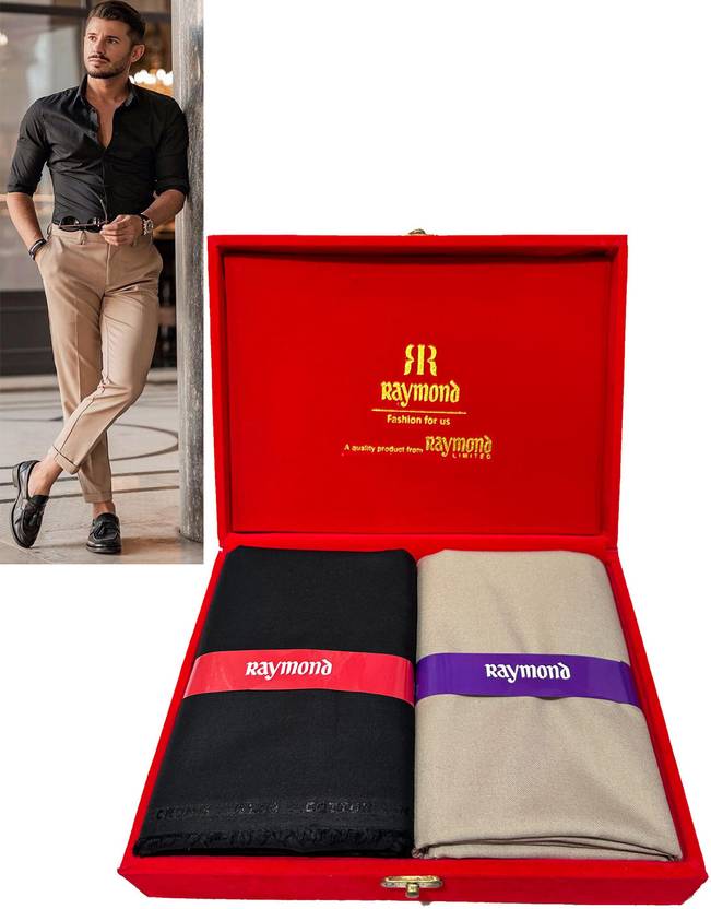 Attractive Velvet Box Gift pack, Raymond Shirt and Raymond Pant, Full Sleeve Shirt fabric and Full length Pant fabric, Giza Cotton Shirt and Ployviscose Pant, Best for Gifting to loved ones, Good Fabric for stitching