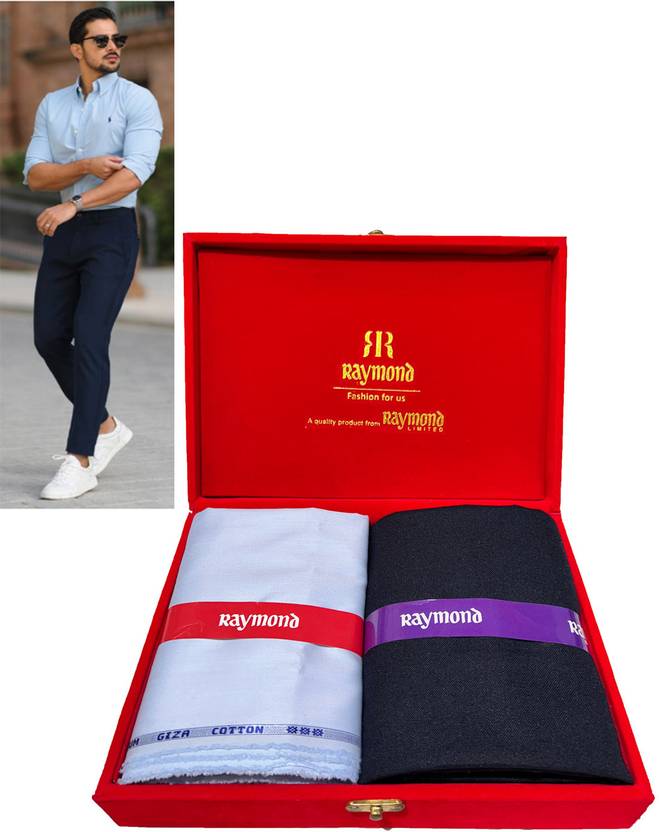 Attractive Velvet Box Gift pack, Raymond Shirt and Raymond Pant, Full Sleeve Shirt fabric and Full length Pant fabric, Giza Cotton Shirt and Ployviscose Pant, Best for Gifting to loved ones, Good Fabric for stitching