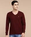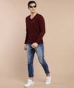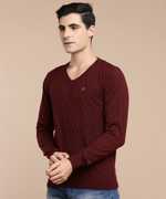 Raymond Self Design V Neck Casual Men Maroon Sweater