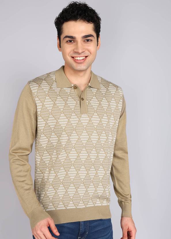 Raymond Solid Collared Neck Casual Men Beige Sweater