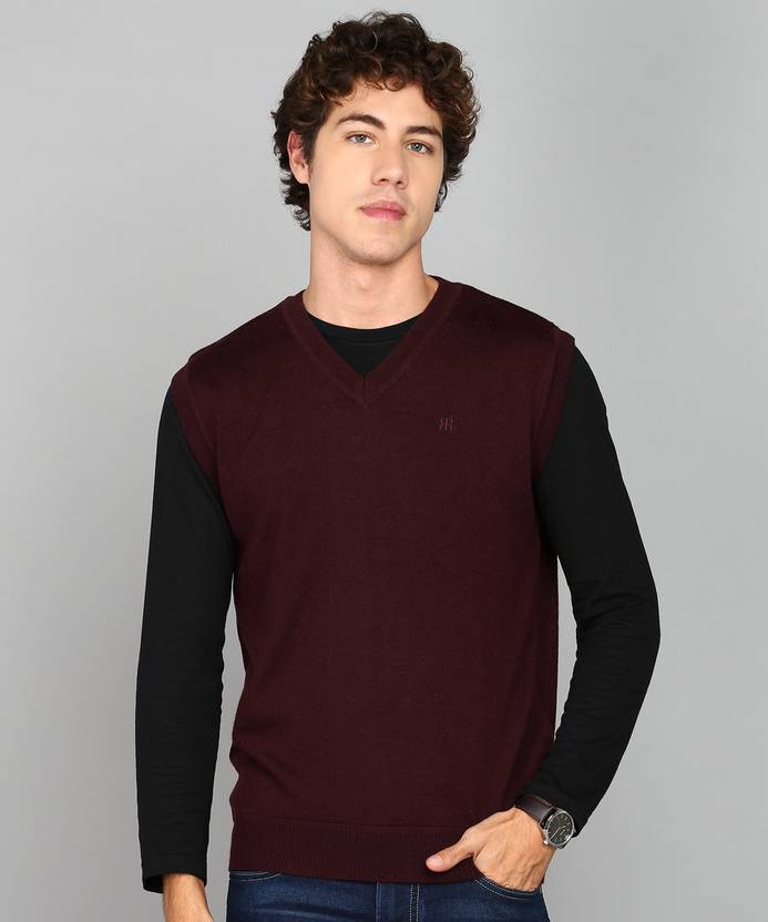 Raymond Solid V Neck Casual Men Maroon Sweater