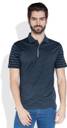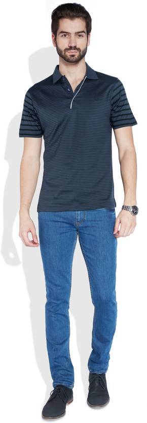 Raymond Men Striped Polo Neck Cotton Blend Black T-Shirt