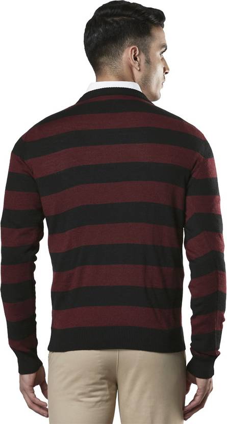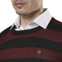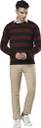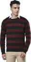 Raymond Woven, Striped Round Neck Casual Men Maroon Sweater