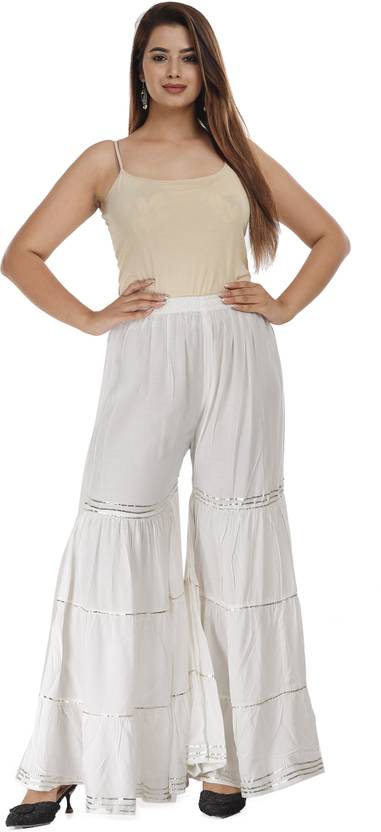Rayssa Women Regular Fit White Viscose Rayon Trousers