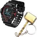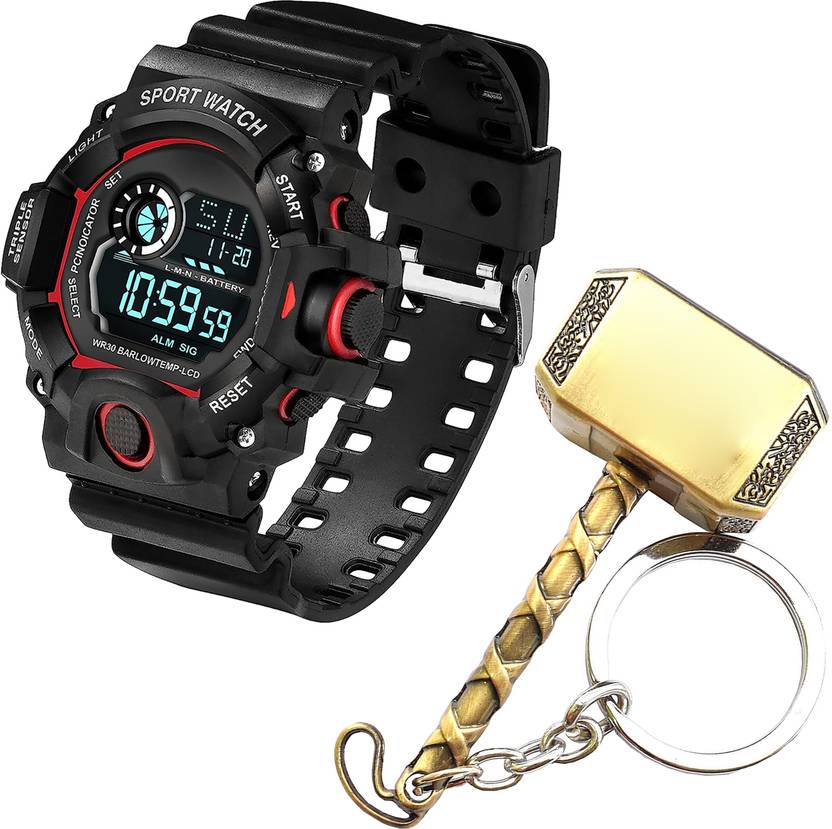 Razyloo Multifunctional 7 Different Lights On Display Stylish Key Chain Combo Digital Watch - For Men A7676 Red Line Sports Digital Watch