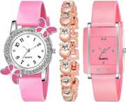 Bestseller One Of The Best Combo in This Site Exclusive Design New Excellent Analog Round Dial And Square Dial And Studded Diamond Bracelet Stylish Generation Pink Coloured Silicone Strap Fancy Wrist Watch For Girls Best In The Market Wedding Gifts for Girls Style Ladies Trendy Hot Selling You’re Daughter Etc... Best Return Gift Lovely Special Guys