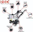 RBD Mini tiller model Tiller/Cultivator/Rotary/Weeder quickly breaks up the dirt & hard clay soil to prepare it for planting. It has dual rotary tines that digs in large or narrow spaces to flip soil thoroughly. An innovative transmission design and powerful 2 stroke petrol engine makes this small tiller deliver heavy-duty performance. A multipurpose machine to make digging, rototilling & weeding fast, easy & fun. One Machine, Multiple Usages Versatile - weeding, mixing, digging & aerating Forged tines for superior tilling and long life. Ergonomic handle design with overhead controls. We are offering best and most perfect quality assortment of power full Mini Tiller. This tillers are highly appreciated for agriculture and gardening purpose. Starts with recoil starter. RBD mini tiller machine is basically used to do tillering operation in the field. It runs on petrol and got a powerful engine of 3 Hp. Wheels are provided down below to facilitate easy movement of the machine. Tilling depth is 5-6 inches and working width is up to 20 inches for better soil aeration. Comes with heavy duty blades which ensure effective tillering inside the soil.