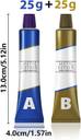 Our A+B repair glue is designed to withstand cooler temperatures, ensuring a slightly hardened adhesive. In case of hardening, simply soak the A tube glue in hot water for softening before use. Withstanding temperatures up to 150°C, this repair glue offers remarkable durability. Once fully cured, it exhibits an iron-like hardness and provides a consistent bond line thickness. Forming a strong and stable permanent bond, our Metal Cast Iron Magic Repair Glue ensures longevity. This reliable bond can endure for years and allows for shaping, tapping, filing, sanding, and drilling based on your requirements. Simplify your repair process with our user-friendly glue. Mixing is a breeze, and it sets within minutes. Within 4-6 hours, it is fully cured, providing optimal strength and reliability. Our glue is specifically formulated for iron and steel casting, effectively addressing issues like sand holes and pores. Additionally, it can be used for repairing fuel tanks, plumbing systems, concrete breaks, and more. Ensure the surface is clean and dry before applying the glue, and your repair work will be completed within 20 minutes after mixing. High-Temperature Resistant: Can withstand temperatures up to 150°C. When fully cured, it is as hard as iron and provides uniform bond line thickness. Do it yourself: Big or Small, you can DIY it with this magic welding glue. Our heavy-duty epoxy and adhesives repair & restore it right the first time.