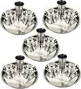 Multipurpose lunch and dinner set for everyday use The fine finish and design makes it to look elegant and can be used in parties and dinner and it can also be used as gifting for with the dinner set. Per Set contains 1 Piece Thali , 2 medium size Bowls , 1 Piece Drinking Glass and 1 Piece Spoon ( Wt 460 gm / set) Made From High Quality Stainless Steel , Resistant To Corrosion Edge Cracking Free Steel Best option for Gifting in any festival or occasions also (Package Contents:- 5 Piece Set (Sets as per selected)