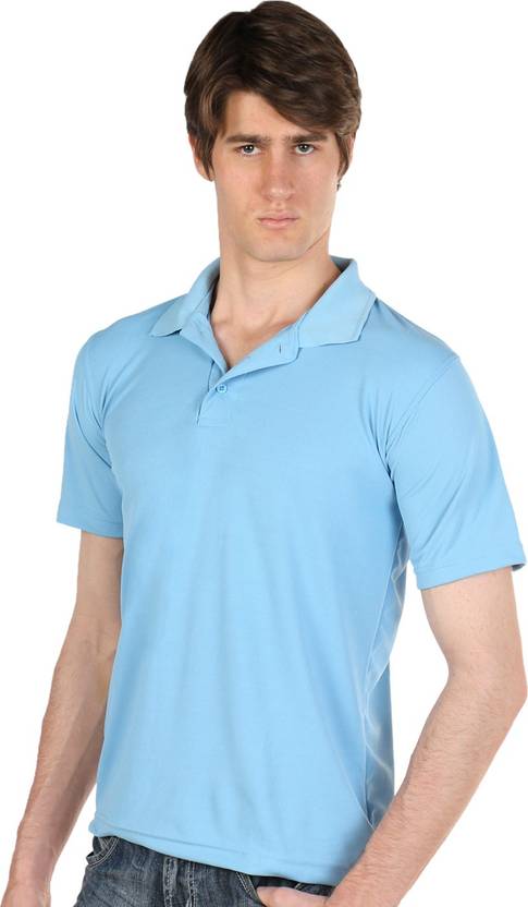 Men Solid Polo Neck Polycotton Blue T-Shirt
