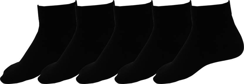 Solid Black color plain ankle length socks for boys & girls for all age groups made from super soft combed cotton yarn and spandex for elasticity, easy to wash and odour free socks. Do not Iron or Bleach. Hand wash only. Anti allergic soft pure cotton socks, helps your feet soft and cozy. Black Ankle Length Plain Solid Socks Pack of 5 Pairs. Made from softest pure cotton yarn and spandex for stretch and elasticity - 80% cotton 10% polyester 10% spandex. REINFORCED KNITTING-reinforced heel and toe in high impact areas for extra durability and protection. ALL DAY COMFORT- We use combed cotton yarn which provides super soft ,breathable and durable socks.It's a wonderful gift choice and will be great for school ,indoor and outdoor activities. Suitable for both summers and winters, very soft cotton socks. GOOD FIT- seamless toe, and stretchable elastic cuff designs make it easy to put them on and do not squeeze legs. Y-Design for heel