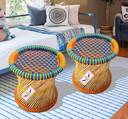RCLV Handmade Bamboo stool for Home & Office Size 13X13 Outdoor & Cafeteria Stool (Orange, Blue, Yellow, Pre-assembled)