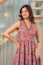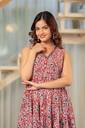 Sporting a V-neck design, ankle-length silhouette, and sleeveless style, this kurta features details that add to its modern appeal. The V-neck frames the neckline neatly, while the sleeveless cut lends a light and airy feel. Ankle-length coverage creates an elongated appearance that works well with different types of footwear. Moreover, adjustable side belts allow a customised fit for every body shape. And, thanks to the attached tassels, it adds a festive and playful charm to your look.