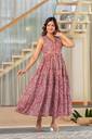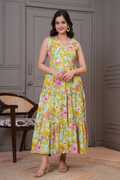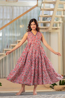 Sporting a V-neck design, ankle-length silhouette, and sleeveless style, this kurta features details that add to its modern appeal. The V-neck frames the neckline neatly, while the sleeveless cut lends a light and airy feel. Ankle-length coverage creates an elongated appearance that works well with different types of footwear. Moreover, adjustable side belts allow a customised fit for every body shape. And, thanks to the attached tassels, it adds a festive and playful charm to your look.