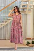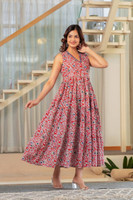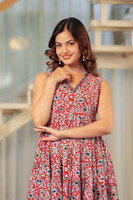 Featuring an elegant floral printed pattern, this women's Anarkali kurta brings a graceful touch to daily wear. The print showcases a blend of floral motifs that appear evenly spaced across the fabric, offering a cohesive and feminine appearance. Thus, whether worn under natural daylight or soft indoor lighting, the floral design contributes to a calm and composed visual appeal.