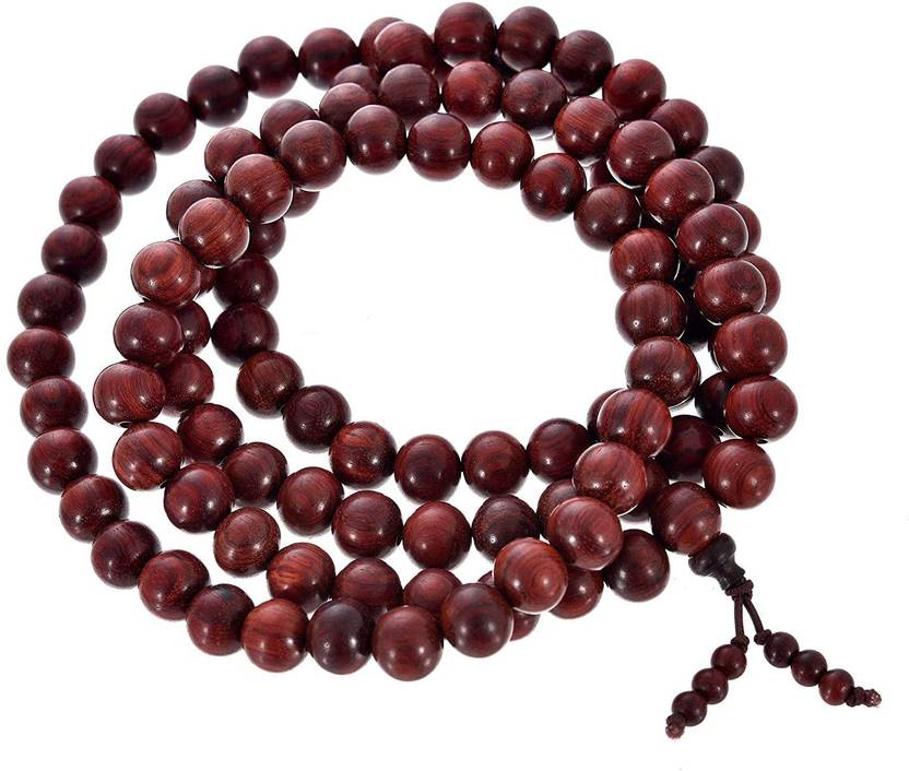 Red sandalwood mala is a representation of lord Brahma and blessed by goddess Lakshmi. This mala soothes pita dosha and helps one conquer the senses. It is said to magnetize positive vibrations. The wearer of red sandalwood mala enjoys all comfort at his / her authority. Red sandal beads have a complex, pleasant aroma that calms the senses.