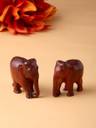 • Handmade Sandalwood Elephant Pair | Set Of 2 Hand Carved Sandalwood Small Elephant Showpiece | Wooden animal pictures for living room or shelf decoration
