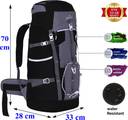 ?Travel bags for men and women which is quite a big bag with a spacious main compartment and many large-capacity pouches. Rucksack bags 75 litres you can store tents, mats, sleeping bags, trekking poles, clothes, hiking shoes, umbrellas and cooking utensils and accessories. The backpack's internal mesh pocket compartment is easier to store and combine. Rain cover is stored in the bottom pocket.? It is ideal for hiking, trekking, skiing, traveling, camping and other outdoor activities. The internal layout of the backpack is clear , More convenient for classification. Suitable for men and women of all ages. ? Impulse tracking bag waterproof bagpack for travelling comes with one year warranty. If you have the idea of short-term mountaineering or outing, this tour bag can satisfy you to load everything.
