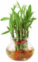 Real Nature 2 Layer Lucky Bamboo with Round Glass Bowl and Colored Jelly Balls Wild Artificial Plant with Pot (15 cm, Green)